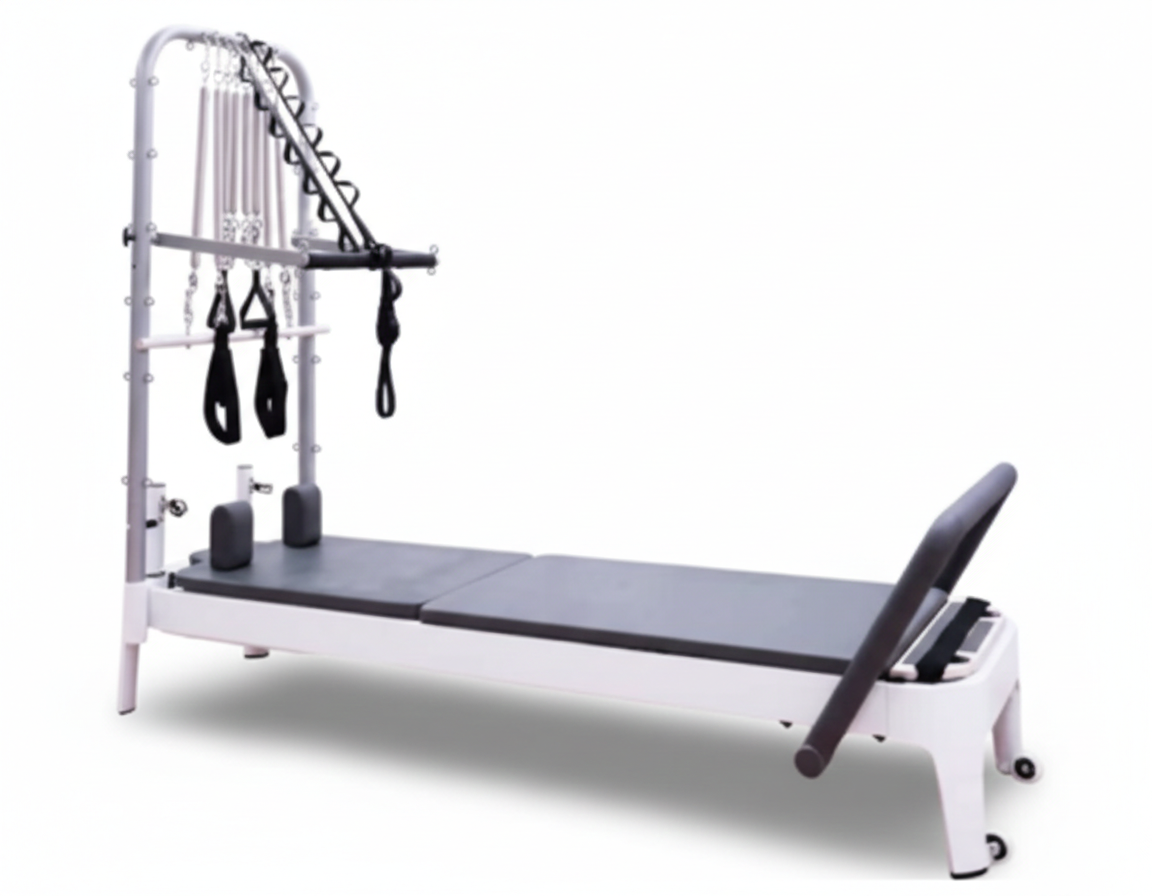 Le Half Tower Reformer est un équipement polyvalent qui associe la glisse fluide d’un Reformer traditionnel à la richesse fonctionnelle d’une Tower verticale. Il permet de réaliser une grande variété d’exercices de renforcement, d’étirement et de stabilisation.